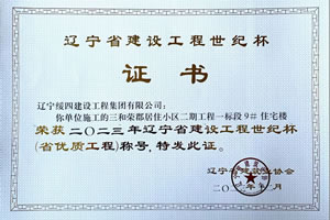 三和榮郡居住小區(qū)二期工程一標段9#住宅樓 榮獲2023年遼寧省建設工程世紀杯(省優(yōu)質(zhì)工程)稱號