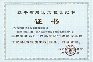 “葫蘆島市特種設(shè)備檢驗基地檢測中心”榮獲2016年度遼寧省建設(shè)工程世紀(jì)杯稱號