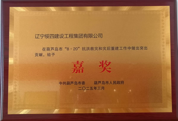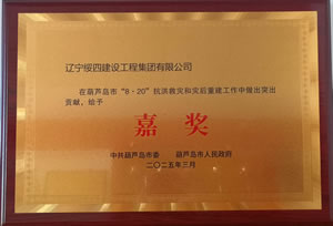 嘉獎(jiǎng):遼寧綏四建工集團(tuán)在葫蘆島市“8·20”抗洪救災(zāi)和災(zāi)后重建工作中做出突出貢獻(xiàn)