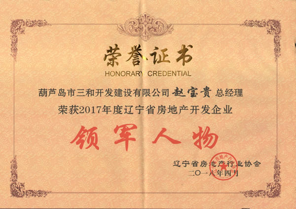 房地產(chǎn)開發(fā)企業(yè)領軍人物獎狀