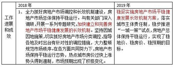 對(duì)于2019年的工作進(jìn)展和成效方面,住建部工作會(huì)議指出,穩(wěn)妥實(shí)施房地產(chǎn)市場(chǎng)平穩(wěn)健康發(fā)展長(zhǎng)效機(jī)制方案,落實(shí)城市主體責(zé)任制,穩(wěn)步推進(jìn)“一城一策”試點(diǎn),房地產(chǎn)總體保持平穩(wěn)運(yùn)行,實(shí)現(xiàn)了穩(wěn)地價(jià)、穩(wěn)房?jī)r(jià)、穩(wěn)預(yù)期的目標(biāo)。