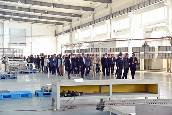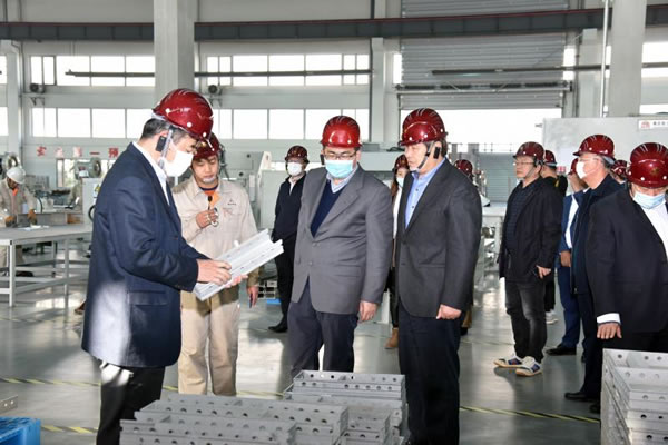 省住建廳領(lǐng)導(dǎo)、省建協(xié)領(lǐng)導(dǎo)及與會(huì)代表參觀1#車間-鋁模板生產(chǎn)車間