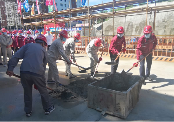 該項目于今年4月21日開工。我集團(tuán)秉承多年來堅持的“干一項工程、出一項精品,拓一方市場、交一方朋友”建設(shè)理念,年初承接該建設(shè)任務(wù)之時,就積極策劃配合業(yè)主辦理手續(xù),保證工程按期開工。建設(shè)過程中,項目團(tuán)隊認(rèn)真編制技術(shù)文件精準(zhǔn)指導(dǎo)施工,實施樣板制、交底制、驗收制等一系列規(guī)章制度,積極推廣應(yīng)用四新技術(shù),履行安全管理、文明、綠色、環(huán)保施工,在封閉管理、物料堆放、車輛沖洗、現(xiàn)場硬化、渣土車封閉運輸?shù)确矫媛鋵崜P塵治理六個百分百,嚴(yán)把質(zhì)量關(guān),如期實現(xiàn)主體封頂。