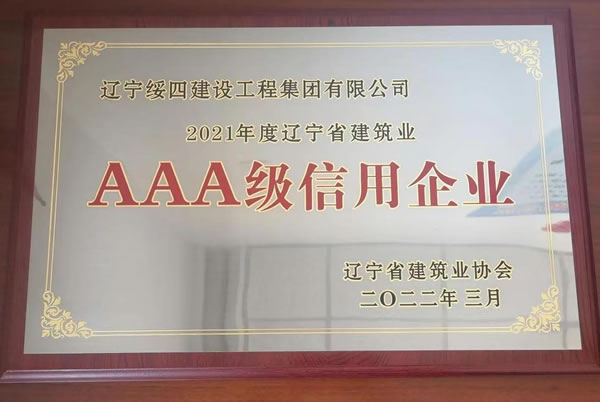 2022年3月,遼寧綏四建工集團有限公司被遼寧省建筑業(yè)協(xié)會評為2021年度遼寧省建筑業(yè)AAA級信用企業(yè)。