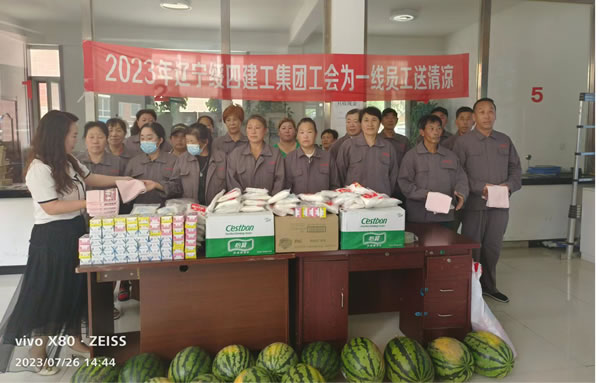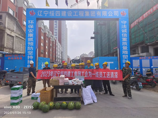 7月25日—28日,遼寧綏四建設(shè)工程集團(tuán)有限公司開展送清涼活動(dòng)。集團(tuán)董事長趙寶貴親自布置,黨支部書記張艷舫、工會(huì)主席薛桂枝、所屬企業(yè)相關(guān)負(fù)責(zé)人房建、喬揚(yáng)、王剛分別帶隊(duì),慰問高溫下堅(jiān)守在一線的員工們。