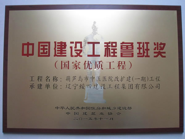2015年11月17日在北京釣魚臺國賓館召開了“2014~2015年度中國建設(shè)工程魯班獎”表彰大會,集團(tuán)鐘雷副總經(jīng)理代表公司參加了此表彰大會,由遼寧綏四建工集團(tuán)承建的葫蘆島市中醫(yī)醫(yī)院改擴(kuò)建(一期)工程榮獲“2014~2015年度中國建設(shè)工程魯班獎”獎項(xiàng)。