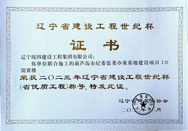 葫蘆島市紀委監(jiān)委辦案基地建設項目1#留置樓 榮獲2023年遼寧省建設工程世紀杯(省優(yōu)質(zhì)工程)稱號