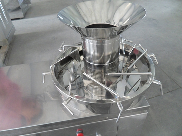 1、本機上部為制粒部分,它主要有十字碾刀、篩筒、防塵罩等組成。各種部件全部采用不銹鋼制成。