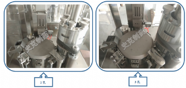 5、配備粉體物料充填機構,使粉體物料經(jīng)過膠囊填充料倉裝置連續(xù)均勻強制下料至膠囊填充區(qū);