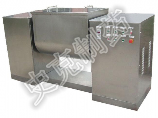 槽型混合機(jī)通過(guò)機(jī)械傳動(dòng),使S式攪拌漿旋轉(zhuǎn),推動(dòng)物料往復(fù)翻動(dòng),均勻混合,槽型混合機(jī)操作時(shí)采用電氣控制,可設(shè)定混合時(shí)間,到時(shí)自動(dòng)停機(jī),從而提高每批物料的混合質(zhì)量。